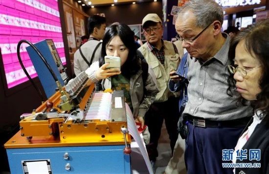 5月10日,在上海举行的2019年中国品牌日活动上,观众观看一台用于圆珠笔质量检测的划圆书写机。 新华社记者 方喆 摄