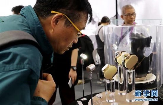 5月10日,在上海举行的2019年中国品牌日活动上,观众观看展出的手表。 新华社记者 方喆 摄