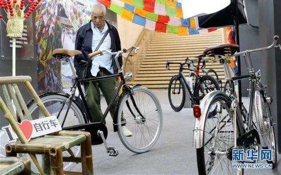 5月10日,在上海举行的2019年中国品牌日活动上,观众在中国自行车协会展台观看展出的凤凰牌自行车。 新华社记者 方喆 摄