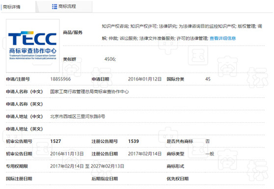 本来我以为国家商标局单位是不用注册商标的,即使不去注册,也没有任何人敢去抢注,更没有人敢冒用这个单位来去从事商业服务,但妥妥的,商标局的商标保护意识也让人惊叹。