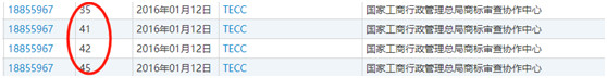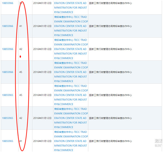 这点就不用多解释了吧,logo及多种组合样式,分别注册了35 、41 、42 、45四个类别,当你还处于为何注册这些类别有疑问的阶段时,来看看商标局怎么做的就明白了,具体类别的解释说过多次,在此不再一一赘述。