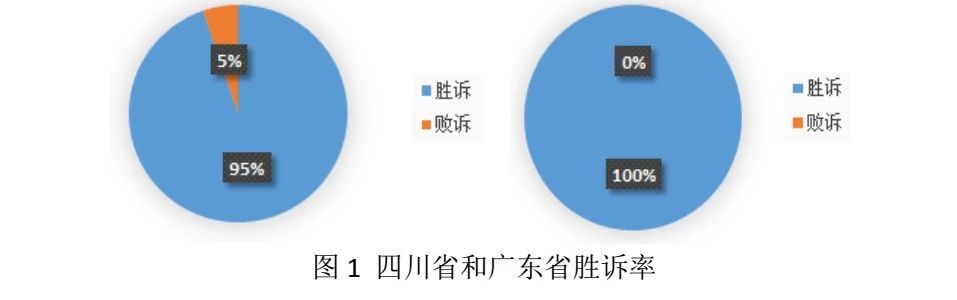经过筛选后四川省符合条件的案例有19件,其中18件胜诉,仅1件败诉,胜诉率高达95%。广东省符合条件的案例有58件,全部胜诉,胜诉率百分之百。
