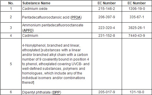 2013年6月20日,ECHA正式公布6项物质进入候选列表,而另外4个物质UV-350、UV-327、UV-328、UV-320因为其毒性还需做进一步证明所以未被列入此次清单,至此授权高关注物质候选清单正式增至144项。(REACH认证)