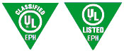 EPH产品认证标志是衡量被检测产品是否达到UL环境和公共卫生标准。印有"Classified"字样的标志用于符合ANSI/NSF标准和其他食品设备卫生条例和要求的产品。包括食品服务,肉类和家禽种植装备和饮用水添加剂。印有"Listed"字样的标志专门用于符合UL公布的EPH安全标准的产品上。(UL 认证标志)