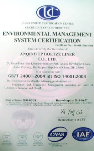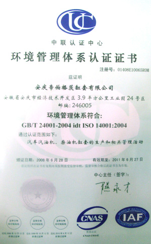 安庆帝伯格茨缸套顺利通过ISO14001认证