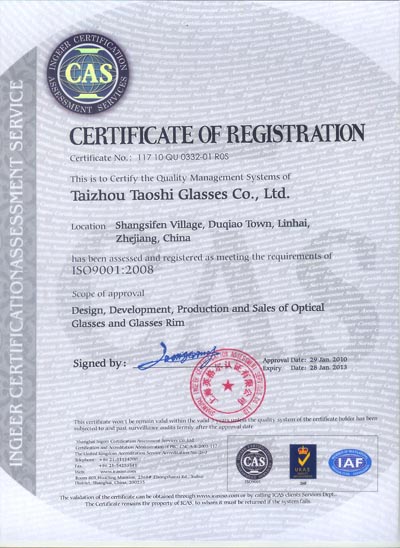 陶氏眼镜以现代化设计为灵魂, 以过硬的产品质量为生命,不断创新,引领时尚潮流,获得客户的亲睐。产品先后通过了ISO9000认证,国际 CE认证等,硬件、软件配备齐全,采用时尚的设计与先进的生产工艺,力求过程严密的控制和检验,产品合格率确保98%以上。