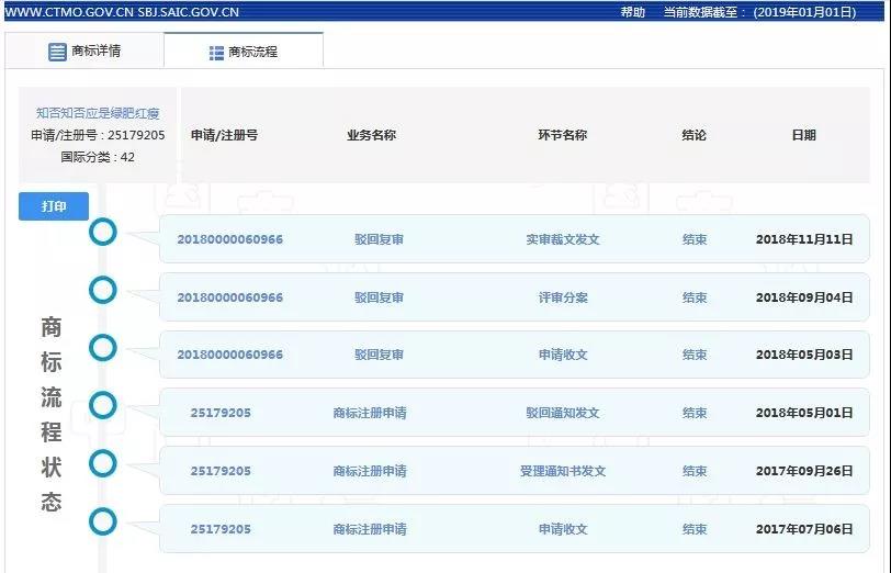 其余的第25179205号、第25179206号、25179216号“知否知否应是绿肥红瘦”商标正处于驳回复审状态。