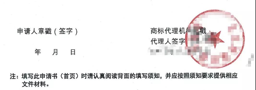 在所有的商标局阶段的申请及所有评审申请中(以下简称“商标申请与评审”),除转让、使用许可备案、质押相关申请外,如申请人已委托代理机构,申请人仅需对委托书和主体资格证明2份文件盖章(签字),无需签署其他申请文件。申请书仅代理机构盖章,代理人签字即可,示例如下: