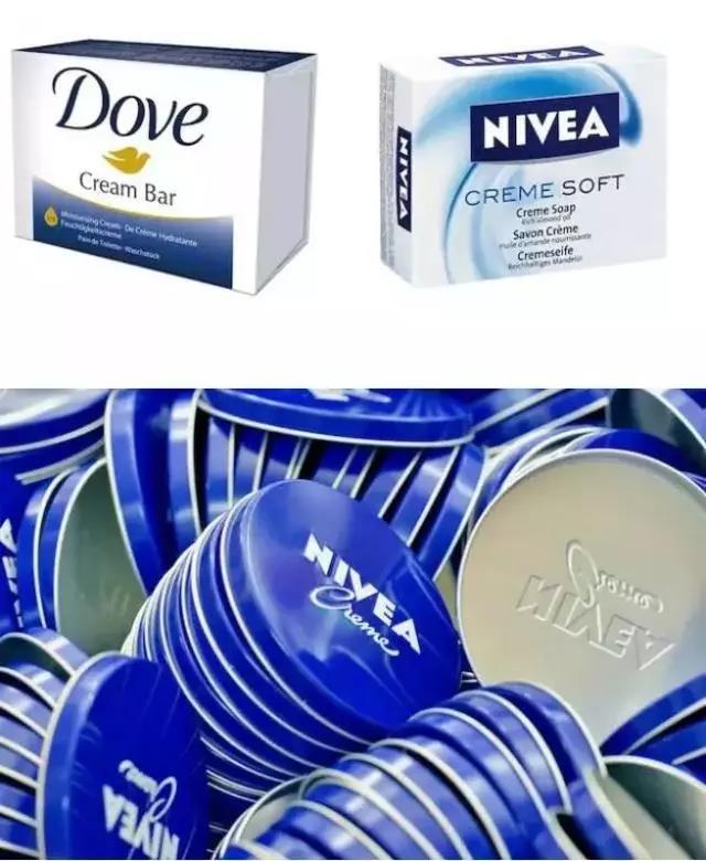 事情是这样的:2013年,多芬(DOVE)母公司联合利华诉妮维雅,对后者于2007年获得的蓝色包装专利进行质疑,认为深蓝色并非妮维雅的专属用色。当时德国联邦专利法院的判决结果为联合利华胜诉,于是我们才在超市货架上看到了使用深蓝色包装的多芬肥皂和洗护用品。