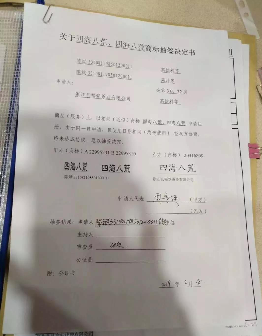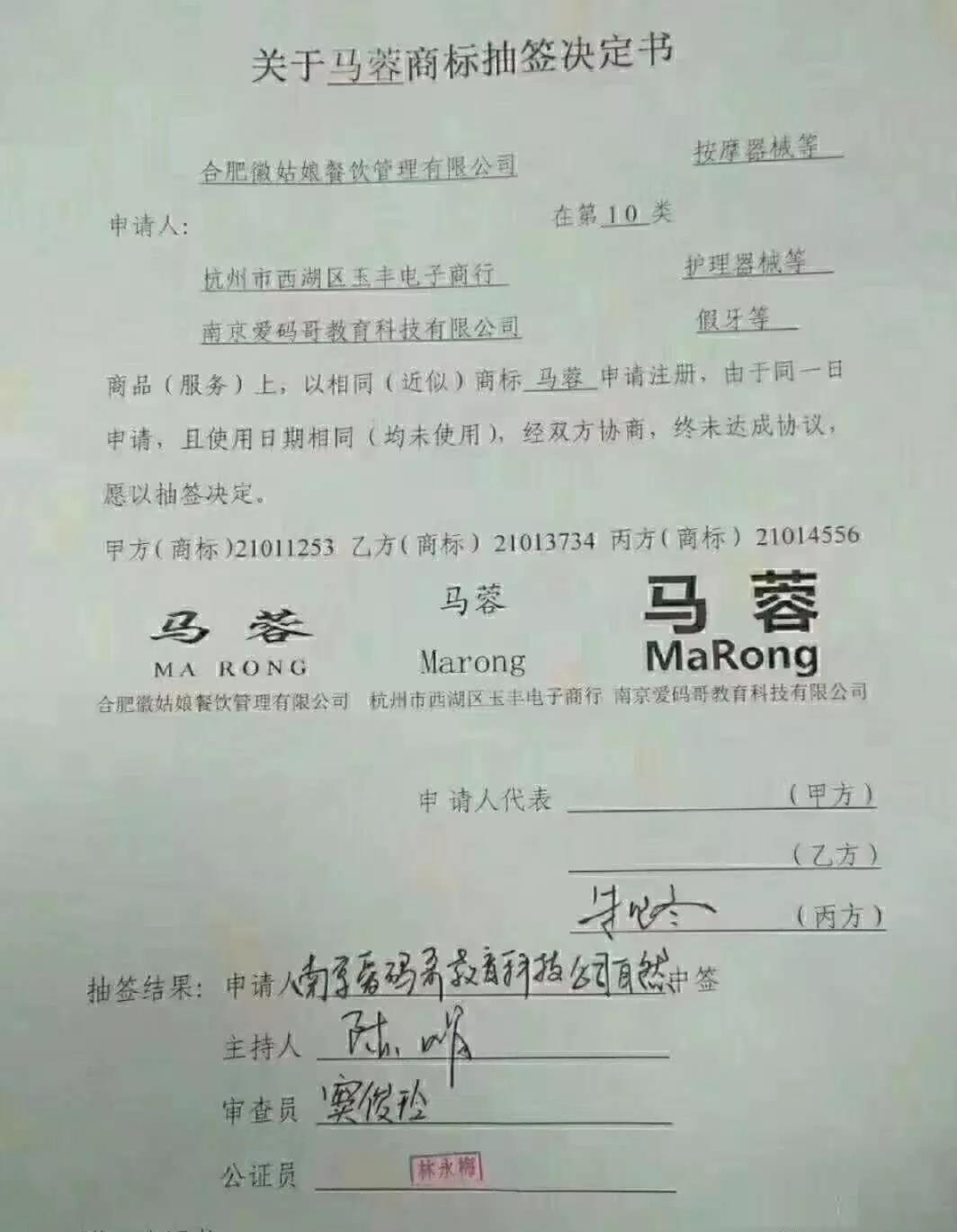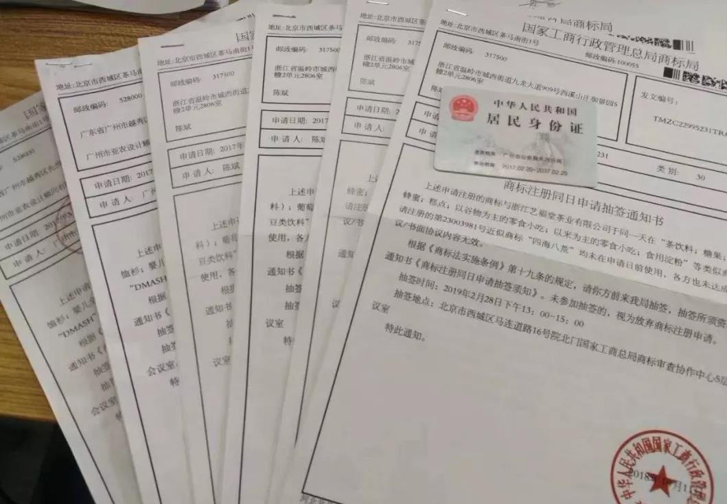 一个商标,3个客户同一天申请,三个人进京抽签决定是谁的。