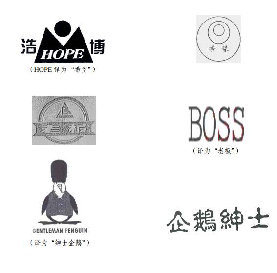 (3)商标的中文与其他不同语种文字的主要含义相同或基本相同, 易使公众对商品或服务来源产生混淆的,商标会被判定为近似商标。如下图: