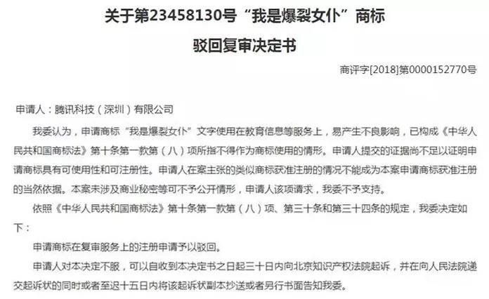 比如,腾讯公司申请“我是爆裂女仆”商标被驳回,复审遇失败;阿里巴巴想申请“阿里小蜜”、“阿里企业小蜜”、“阿里店小蜜”商标,结果同腾讯一样,因为“易产生不良影响”被驳回,复审再失败。