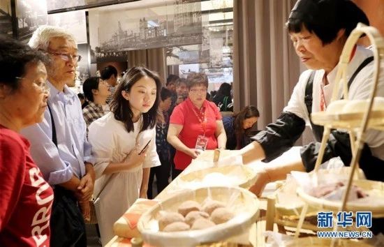 5月10日,在上海举行的2019年中国品牌日活动上,观众观看糕点制作。 新华社记者 方喆 摄
