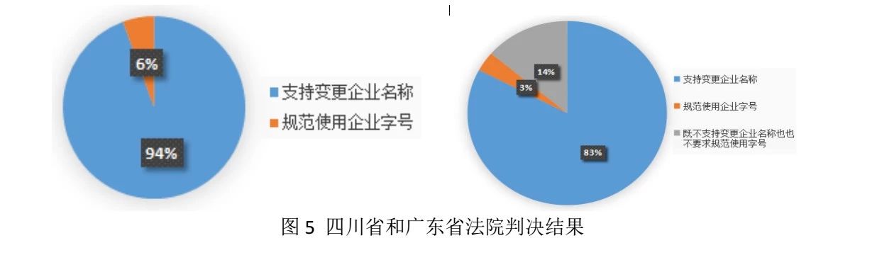 如图1,在审理企业名称(字号)和注册商标专用权冲突时,四川省和广东省法院的态度可谓是非常明朗,这一点也出乎了笔者的意料。