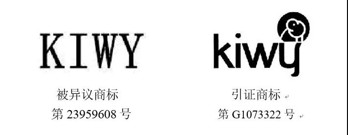 被异议商标第23959608号“KIWY”商标(见图),是由被异议人于2017年05月04日向原国家工商行政管理总局商标局申请在“婴儿食品,含药物的宠物用沐浴露,消毒纸巾,卫生巾带,月经内裤,婴儿奶粉,卫生护垫,卫生巾,婴儿尿布,婴儿含乳面粉”上注册,并于2018年01月20日公告。异议人于公告期内对该商标提出异议申请,请求商标局不予注册该商标。