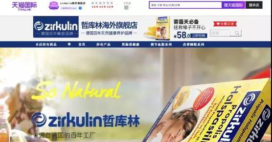 2016年,德国保健市场的旗帜品牌Zirkulin入住天猫,开拓中国市场