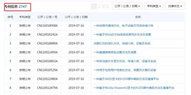 截至目前,斗鱼已经积累了2747件专利申请数量,专利实力居游戏直播领域首位。