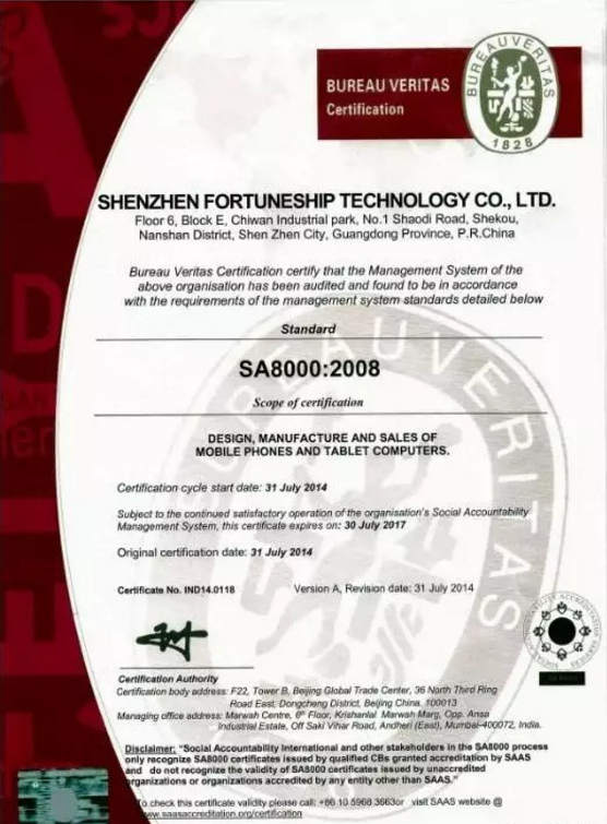 SA8000是根据国际劳工组织公约,世界人权宣言和联合国儿童权益公约制定的全球首个道德规范国际标准。其宗旨是确保供应商所提供的产品,皆符合社会责任标准的要求。SA8000标准适用于世界各地、任何行业、不同规范的企业。