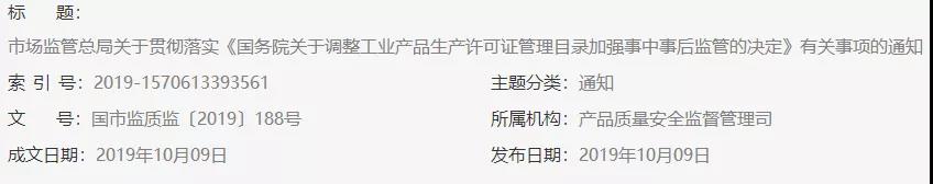 2019年9月18日,国务院印发《关于调整工业产品生产许可证管理目录加强事中事后监管的决定》(国发〔2019〕19号,以下简称国务院《决定》),对工业产品生产许可证制度改革作出重要部署。全国市场监管系统要进一步提高思想认识,深刻理解生产许可证制度改革的重要意义,准确把握国务院决策部署,坚决落实各项改革任务。为贯彻落实好国务院《决定》,现就有关事项通知如下: