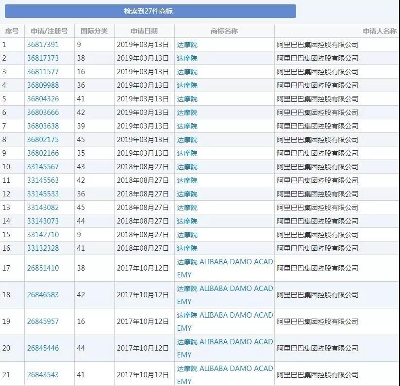 随着达摩院的成就越来越高,这个品牌也将不断地影响世界,如果没有商标,可能会是阿里的一大遗憾。