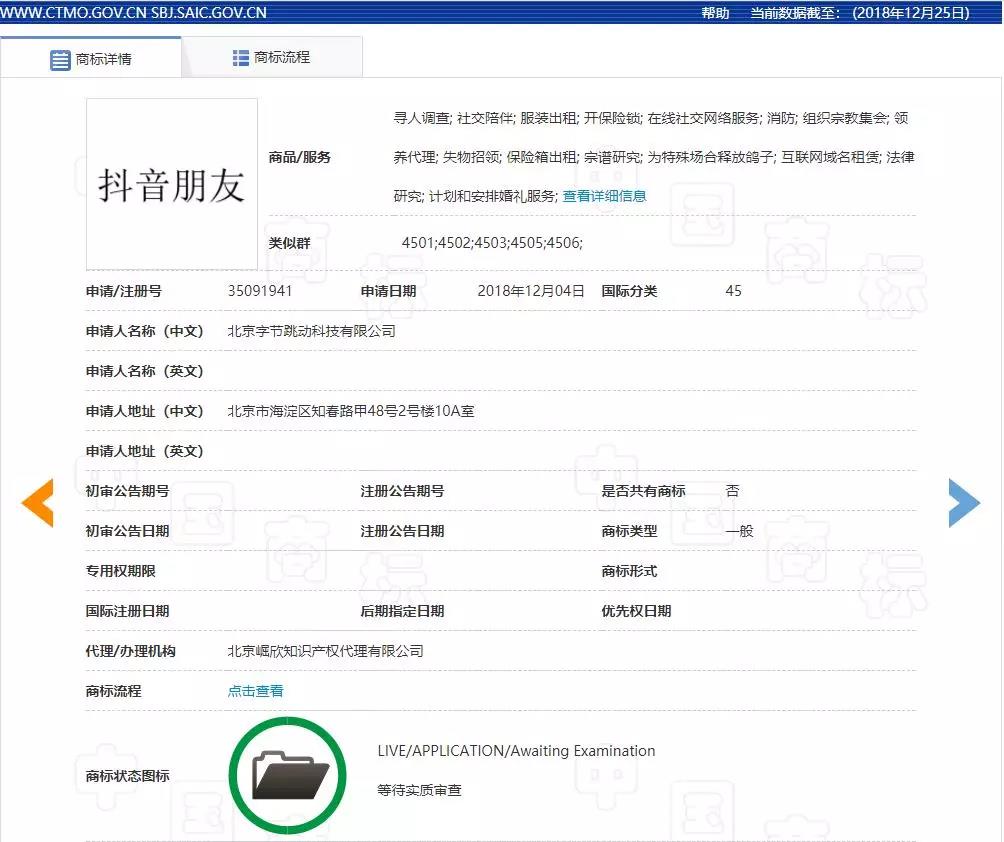 北京字节跳动科技有限公司即今日头条和抖音母公司于12月4日提交了一份名为抖音朋友的商标申请。 值得一提的是,之前今日头条已经确认用独立公司单独推出社交IM软件飞聊,有媒体猜测,