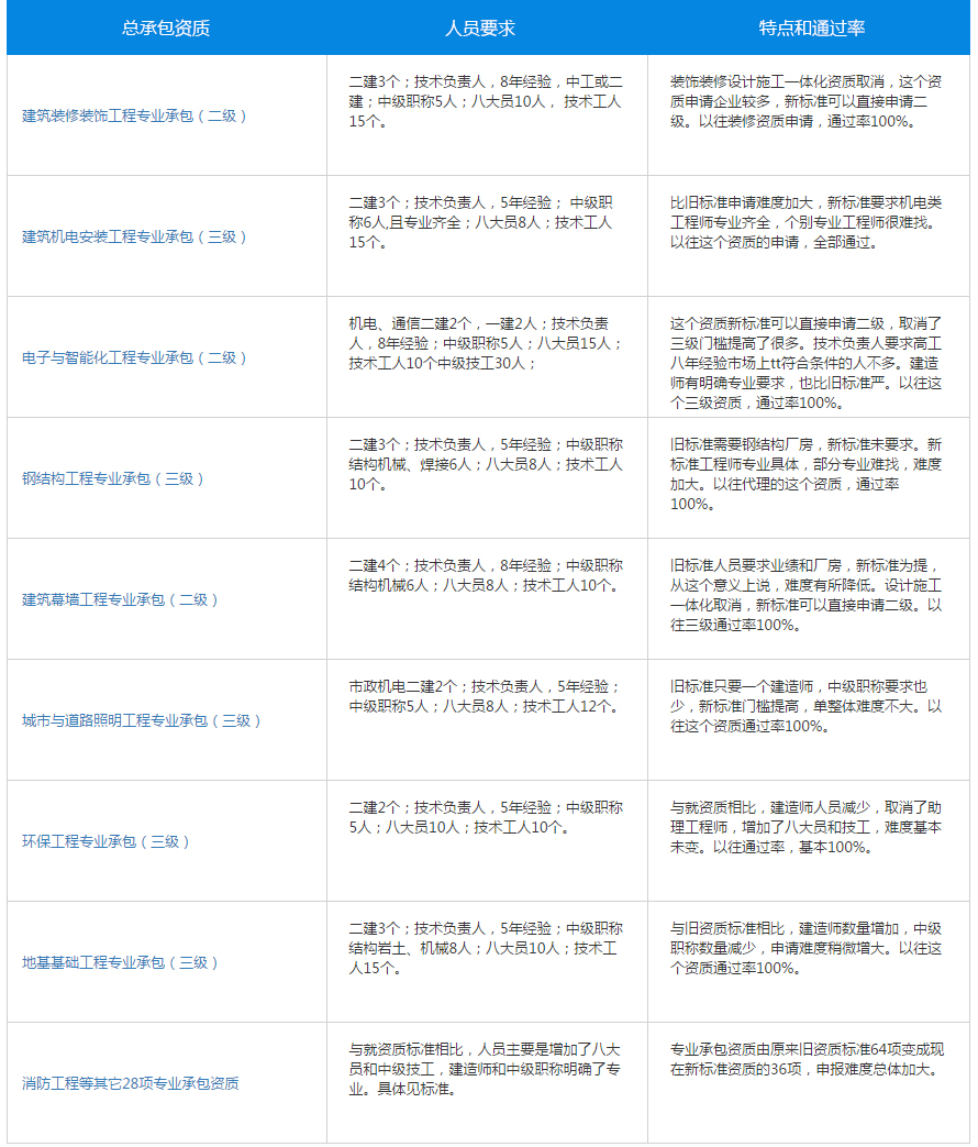 专业承包资质标准